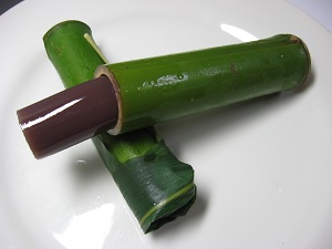 夏で青竹とくれば流しそうめんを連想させるが、今回の一品、その中に流し込んだるは羊羹で。